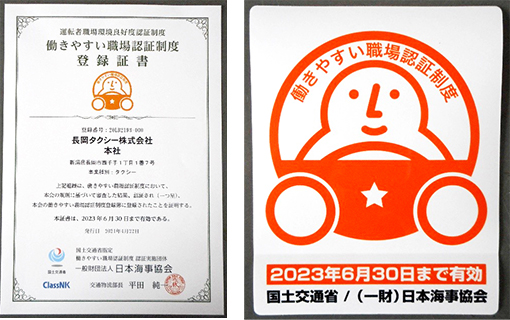 協会様が昨年度から審査を始めた運転者職場環境良好度認証制度で、『働きやすい職場』として『一つ星』をいただきました。
